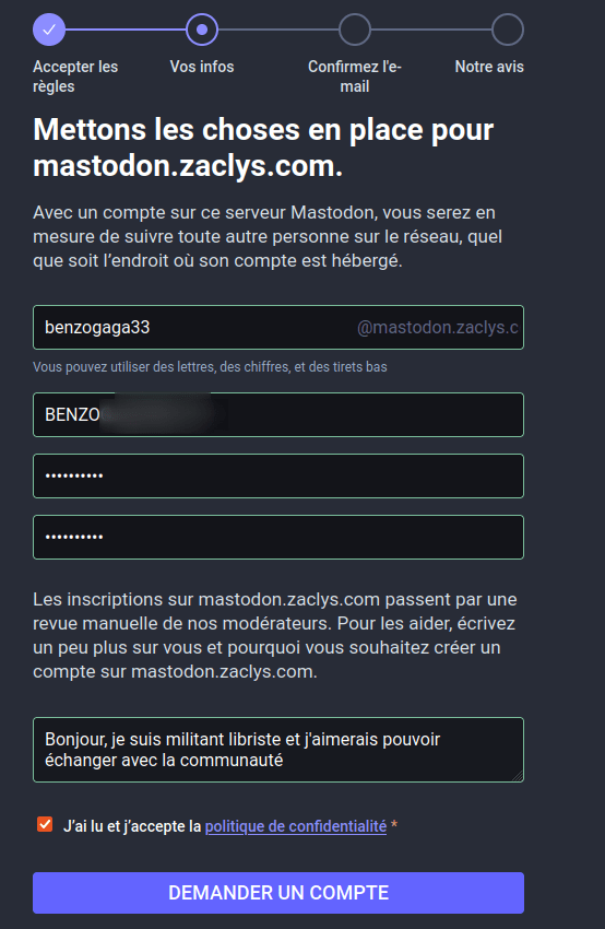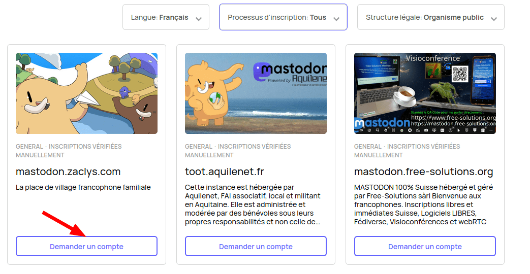 Pour créer un compte Mastodon, faut s'inscrire sur une instance
