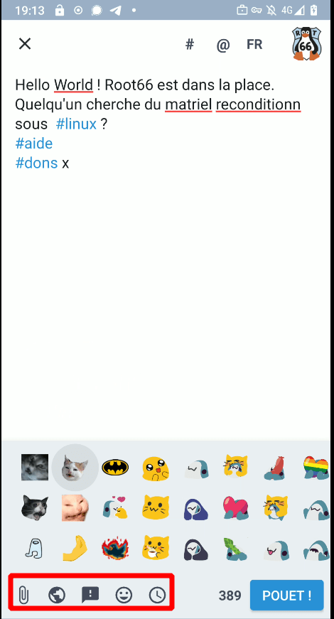 | tweet 280 caractères / retweet / like | pouet 500 caractères/ repouet / favori |
